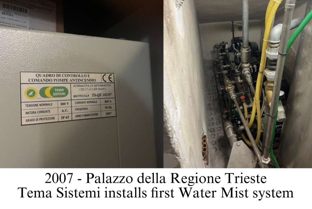 Una pietra miliare nella storia aziendale è rappresentata dalla prima installazione di un impianto water mist nel 2007 presso il Palazzo della Regione di Trieste: un impianto ancora perfettamente funzionante, come certificato dall’ultima manutenzione eseguita nel gennaio 2025.